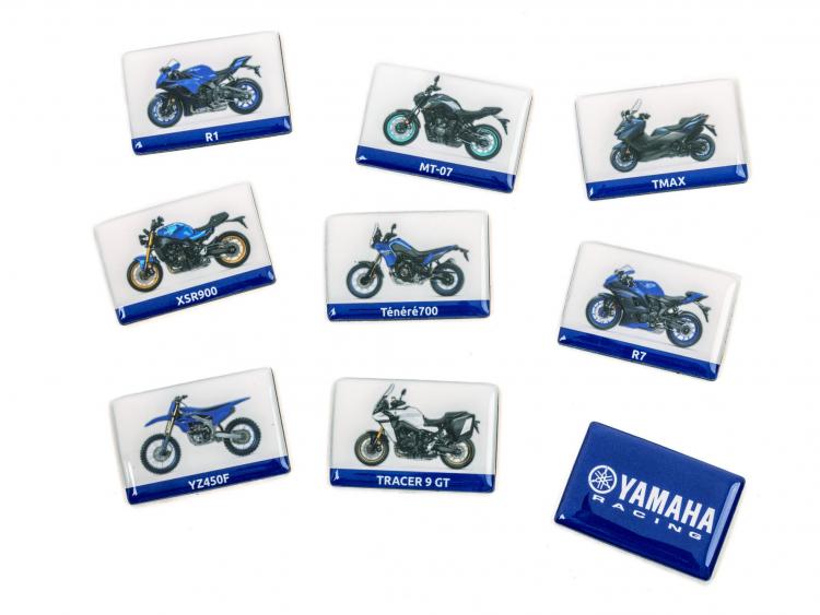 Fixé aux surfaces métalliques ou magnétiques, ce jeu comprend huit modèles emblématiques de la dernière gamme Yamaha et un aimant Yamaha Racing.